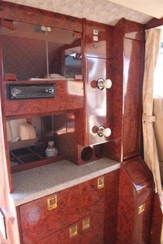 New in 2011. Fireblocked, Beige leather seating and beige carpeting with Burlwood cabinetry. Large refreshment center, flushing lav, stereo CD/FM system.